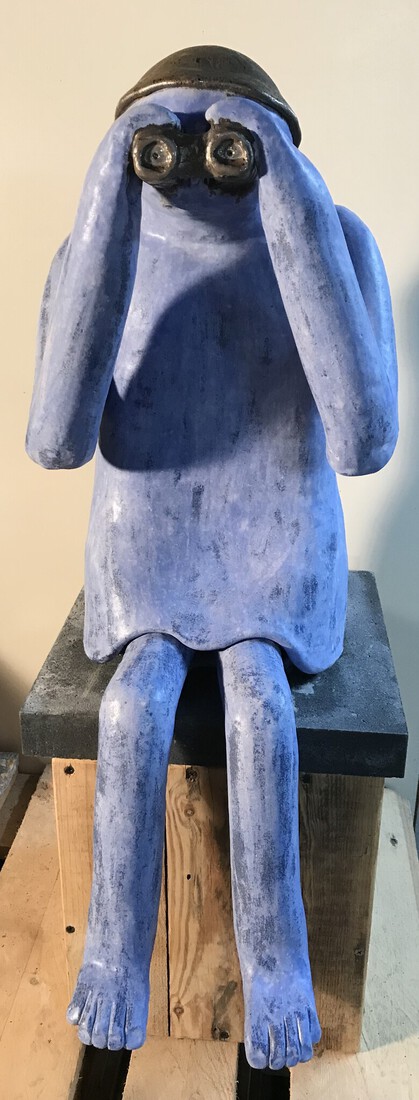 Leuk beeldje om in de tuin te zetten,gebakken op 950° en 1250°,dus vorstvrij.Deze is een matte variant.De beelden zijn basis gemonteerd op een stoeptegel.