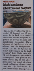 Chris schenkt een zelfgemaakte doopvont,op aanvraag van Pastoor Patrick Derde aan de kerkgemeenschap van Nederzwalm op 22 januari 2022.